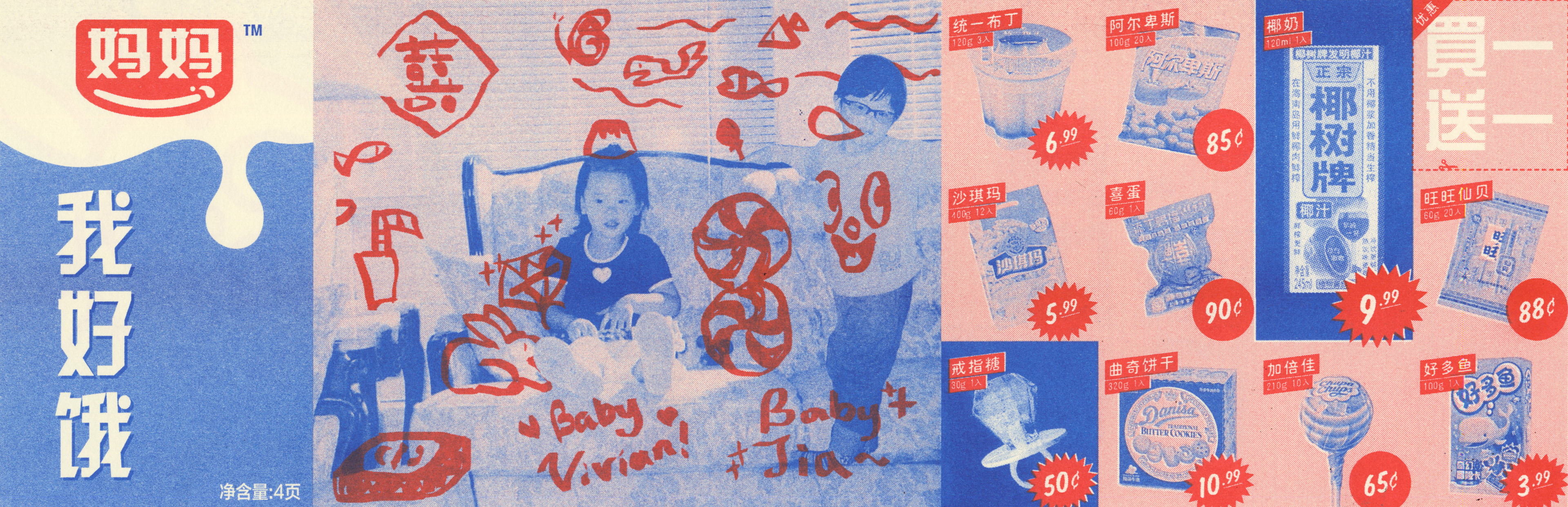 A collaborative zine about Korean and Chinese childhood snacks done on the risograph with Vivian Wang, Jiahui Luo and April Kim under guidance of Christopher Swift in Color & Surface Spring 2018. 11' x 17'